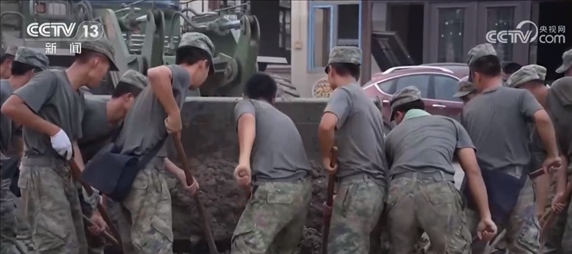 在房山區(qū)河北鎮(zhèn)三福村、磁家務村,官兵們連續(xù)奮戰(zhàn)3天3夜,出動機械十余臺、人員200余人,在災后重建一線,干部戰(zhàn)排頭,黨員沖在前,共清理了鄉(xiāng)村道路20余條、土石方2000多方。
