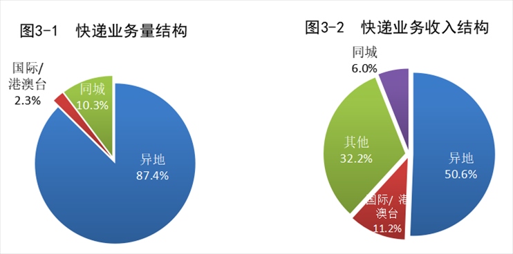 1-7月,郵政行業(yè)業(yè)務(wù)收入(不包括郵政儲(chǔ)蓄銀行直接營業(yè)收入)累計(jì)完成8482.3億元,同比增長10.5%。其中,快遞業(yè)務(wù)收入累計(jì)完成6495.3億元,同比增長10.5%。7月份,郵政行業(yè)寄遞業(yè)務(wù)量完成131.6億件,同比增長9.7%。其中,快遞業(yè)務(wù)量完成107.7億件,同比增長11.7%。7月份,郵政行業(yè)業(yè)務(wù)收入完成1194.5億元,同比增長5.3%。其中,快遞業(yè)務(wù)收入完成952.4億元,同比增長6.0%。1-7月,同城、異地、國際/港澳臺(tái)快遞業(yè)務(wù)量分別占全部快遞業(yè)務(wù)量的10.3%、87.4%和2.3%;業(yè)務(wù)收入分別占全部快遞收入的6.0%、50.6%和11.2%。與去年同期相比,同城快遞業(yè)務(wù)量的比重下降1.7個(gè)百分點(diǎn),異地快遞業(yè)務(wù)量的比重上升1.1個(gè)百分點(diǎn),國際/港澳臺(tái)業(yè)務(wù)量的比重上升0.6個(gè)百分點(diǎn)。