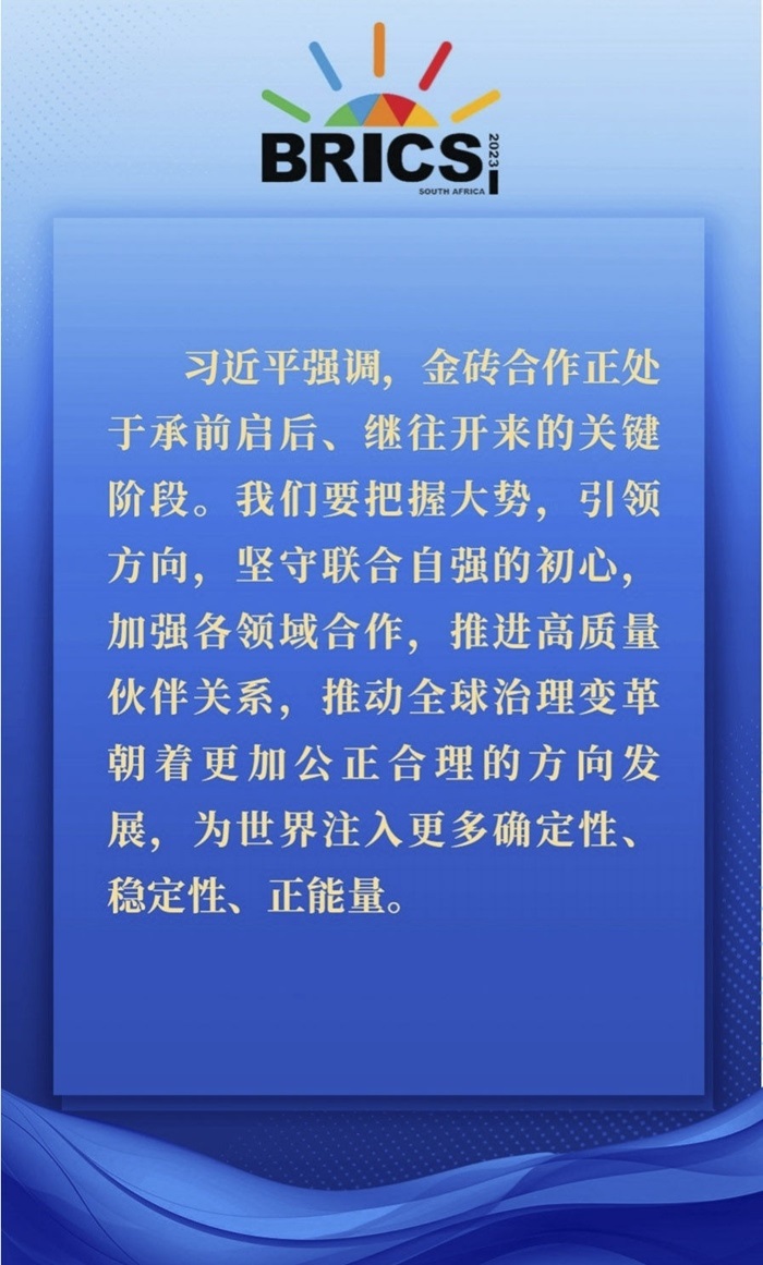當?shù)貢r間8月23日上午,金磚國家領(lǐng)導人第十五次會晤在約翰內(nèi)斯堡杉藤會議中心舉行。南非總統(tǒng)拉馬福薩主持會晤。中國國家主席習近平、巴西總統(tǒng)盧拉、印度總理莫迪和俄羅斯總統(tǒng)普京(線上)出席。