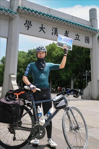 2023年是云南昆明小伙文迪與武漢大學相遇的年份,2023公里是文迪的家鄉(xiāng)到武大的距離?!斑@是我一直以來的夢想”文迪說,在初中時,他讀到大學新生騎行報到的故事,從此下定決心,未來考上大學后“考到哪里,就騎到哪里”。今年高考,文迪被武大資源與環(huán)境科學學院空間信息與國土資源專業(yè)錄取,從云貴高原到荊楚大地,文迪一路騎行,來了一場特別的新生報到之旅!8月21日,這場既是旅游又是“流浪”的旅途終于結束,文迪也來到了珞珈山下,即將在這座最美大學校園里開始四年的大學生活。
