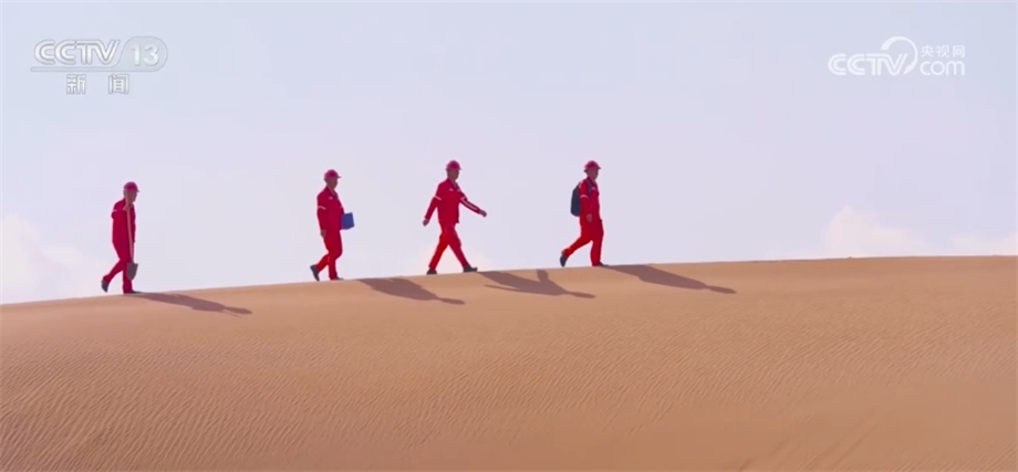 中國石油長慶油田第二采氣廠采氣工 葉濤:車到這里就過不去了,再步行翻過前面這兩座沙丘,今天的巡護(hù)任務(wù)就完成了。