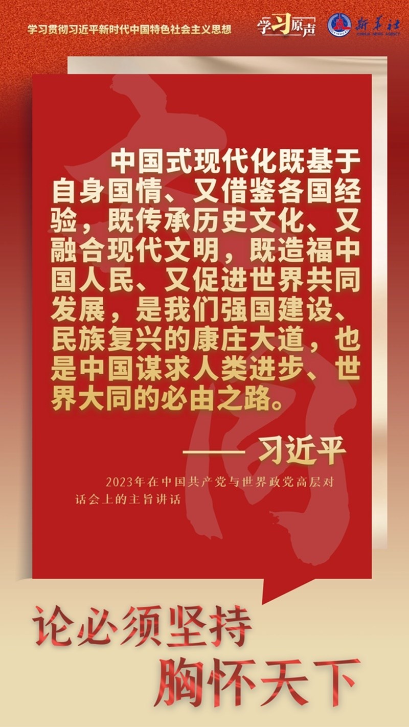 中國共產(chǎn)黨是為中國人民謀幸福、為中華民族謀復(fù)興的黨,也是為人類謀進步、為世界謀大同的黨。我們要拓展世界眼光,深刻洞察人類發(fā)展進步潮流,積極回應(yīng)各國人民普遍關(guān)切,為解決人類面臨的共同問題作出貢獻,以海納百川的寬闊胸襟借鑒吸收人類一切優(yōu)秀文明成果,推動建設(shè)更加美好的世界。