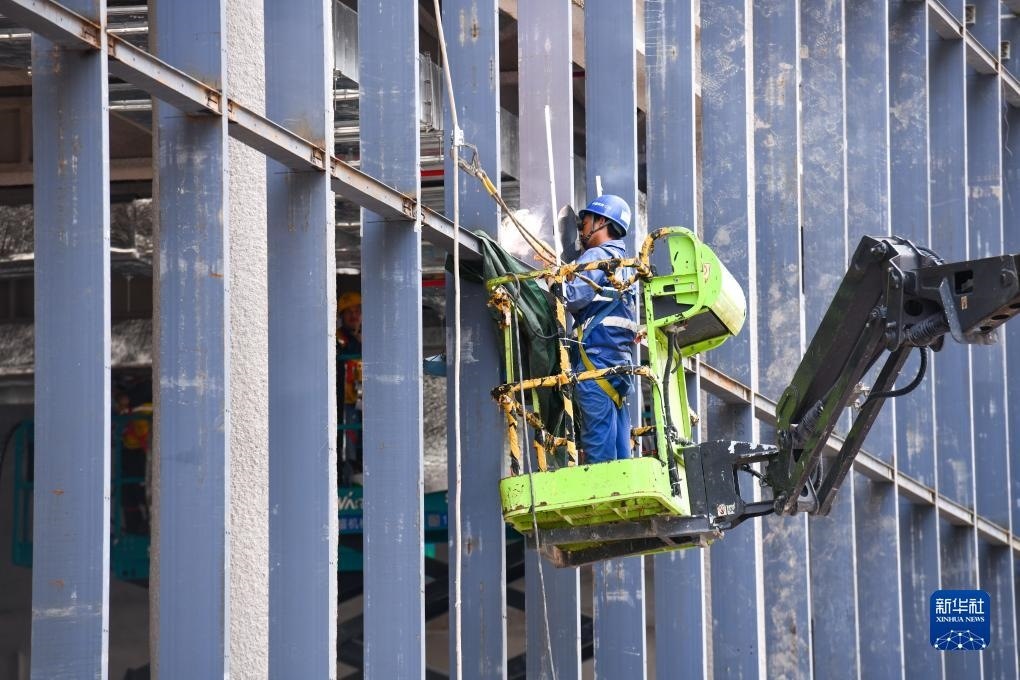 8月30日,在河套深港科技創(chuàng)新合作區(qū)首批重點(diǎn)項(xiàng)目河套壹號(hào)(原名:深港科創(chuàng)綜合服務(wù)中心)建設(shè)現(xiàn)場,中建深裝的工人進(jìn)行幕墻鋼龍骨焊接作業(yè)。新華社記者 梁旭 攝