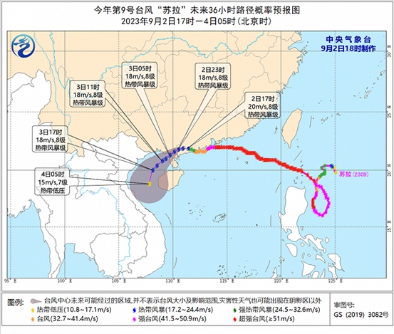 預(yù)計(jì),“蘇拉”將以每小時(shí)15-20公里的速度向西偏南方向移動(dòng),將于3日上午移入北部灣海面,強(qiáng)度逐漸減弱。