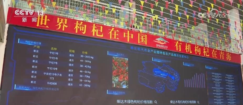 這兩天,在剛剛投入運行的都蘭縣國家級現(xiàn)代農(nóng)業(yè)產(chǎn)業(yè)園特色農(nóng)產(chǎn)品展示交易中心內(nèi),匯集了不少枸杞種植戶和外來采購商。眼前,這塊屏幕上顯示的,是國內(nèi)不同品種枸杞當前的市場價格、價格指數(shù)走勢、種植區(qū)域分布、產(chǎn)量等信息。