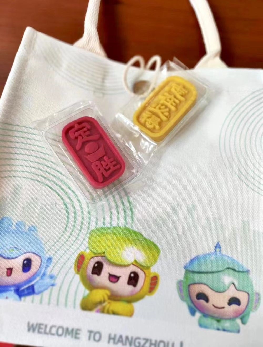 “志愿者們可以在手賬本上記錄志愿服務過程中的點點滴滴,留下美好的亞運回憶;特制的行李卡牌可以幫助他們標記自己的物品和行李;而一紅一黃兩塊定勝糕上面分別寫有‘定勝’以及‘志在必得’的字樣,則是為他們加油打氣。”杭州亞運村人事與志愿者管理中心副主任、浙江外國語學院團委書記邱萍說。
