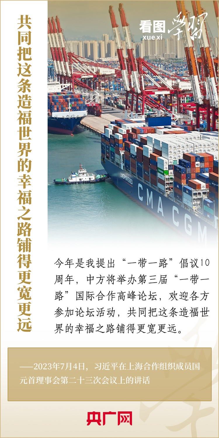 2013年金秋,習近平主席開創(chuàng)性提出共建“絲綢之路經濟帶”和“21世紀海上絲綢之路”,即“一帶一路”倡議。十年來,共建“一帶一路”倡議從共商共建共享的“大寫意”,到精謹細膩的“工筆畫”,影響力和感召力不斷擴大。在“一帶一路”倡議提出10周年之際,《看圖學習》為您梳理習近平主席的一系列重要論述。一起來學習!