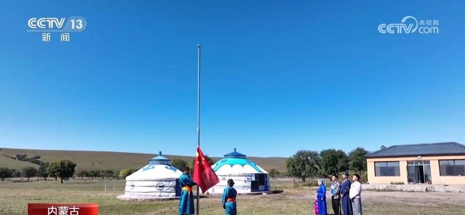 當(dāng)清晨的陽光照亮草原,牧民霍高娃夫妻倆開始忙碌起來,每年的國慶期間,他們都會自發(fā)的舉行升國旗儀式。2023年,他們還邀請了周邊的牧民朋友一起,參與這個莊嚴(yán)的儀式。興安盟科右前旗滿族屯滿族鄉(xiāng)是內(nèi)蒙古自治區(qū)19個民族鄉(xiāng)之一,這里的牧民世代生活在邊境線上。2022年,滿族屯滿族鄉(xiāng)為156戶邊境牧民,修建了規(guī)范儀式標(biāo)準(zhǔn)的升旗臺,讓五星紅旗冉冉升起在祖國北疆的邊境線上。