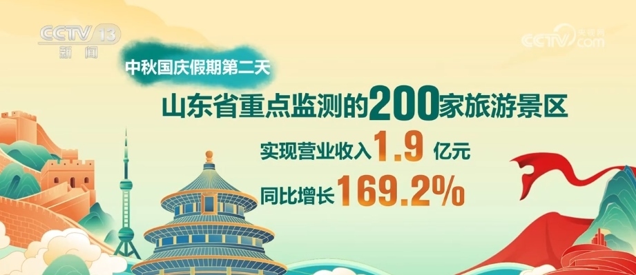 2023年中秋、國慶假期,山東旅游市場熱度攀升。9月30日,山東省重點(diǎn)監(jiān)測的200家旅游景區(qū),當(dāng)日接待游客267.9萬人次,同比增長131.5%;實(shí)現(xiàn)營業(yè)收入1.9億元,同比增長169.2%。