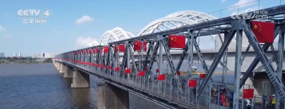 假日期間,擁有100多年歷史的松花江濱洲鐵路橋,在800面五星紅旗的裝飾下,成了眾多市民游客抒發(fā)愛國情懷的“祝愿橋”。