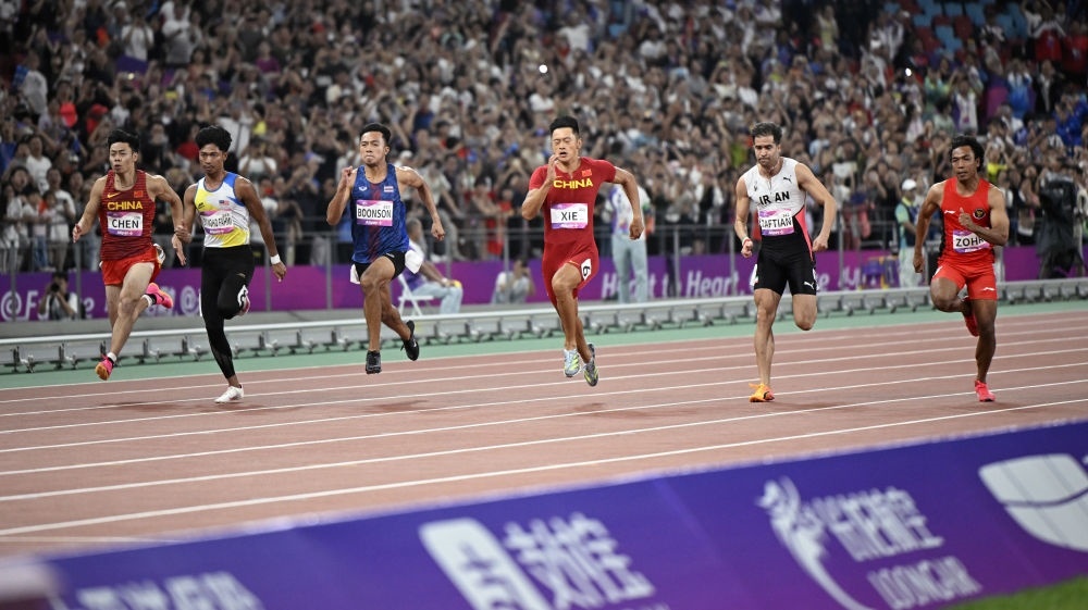 率先進(jìn)行的女子100米決賽中,面對(duì)曾經(jīng)在今年亞錦賽上戰(zhàn)勝過(guò)自己的新加坡名將佩雷拉,扎著“哪吒頭”的葛曼棋頂住壓力,憑借強(qiáng)有力的沖刺以11秒23率先撞線(xiàn)。隨后的男子決賽,名將謝震業(yè)戰(zhàn)勝了對(duì)手,也戰(zhàn)勝了自己。9秒97的奪冠成績(jī)是他繼2018年之后,時(shí)隔5年再次突破10秒大關(guān)。雖然2.4米每秒的順風(fēng)風(fēng)速讓他的成績(jī)不能被計(jì)為達(dá)標(biāo)巴黎奧運(yùn)會(huì)的有效成績(jī),但謝震業(yè)賽后表示,雖然超了風(fēng)速,但是成績(jī)就在這里,戰(zhàn)勝了自己心里就沒(méi)有遺憾。