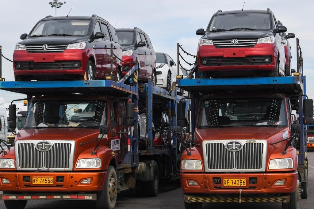 這是在霍爾果斯公路口岸等待出口的車輛(9月6日攝)。新華社記者 趙戈 攝
