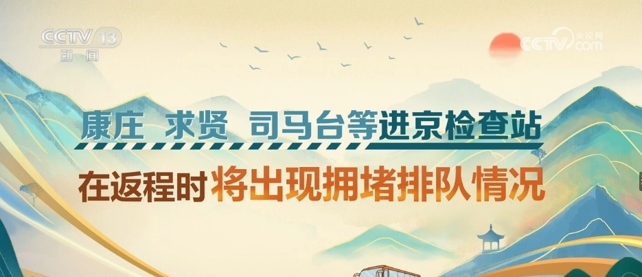 為應(yīng)對假期返程客流,交通部門加強(qiáng)組織做好地面交通銜接和保障。北京交通部門預(yù)計,10月6日10時—22時,京平高速北務(wù)服務(wù)區(qū)、京港澳高速竇店服務(wù)區(qū)進(jìn)京方向車流量大??登f、求賢、司馬臺等進(jìn)京檢查站在返程時將出現(xiàn)擁堵排隊情況。