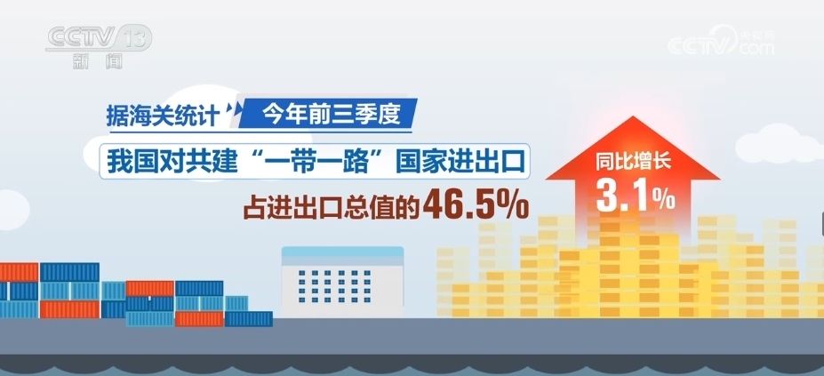 據(jù)海關(guān)統(tǒng)計,2023年前三季度,我國對共建“一帶一路”國家進(jìn)出口同比增長3.1%,占進(jìn)出口總值的46.5%。