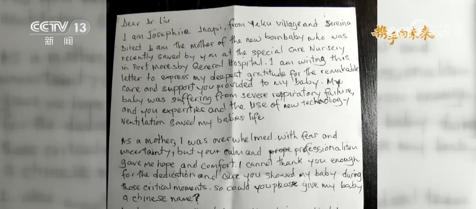 隨著呼吸機(jī)開始正常運(yùn)轉(zhuǎn),患兒的重要生命體征也重回正常范圍內(nèi)。看到孩子脫離呼吸機(jī)的那一刻,患兒母親喬瑟菲·伊奈皮握著劉振球的手不停說(shuō)謝謝。事后,她專門寫了一封信表達(dá)自己的感激之情。她在信中說(shuō):“作為一個(gè)母親,我被恐懼和不確定所淹沒,但你的鎮(zhèn)靜和專業(yè)給了我希望和安慰。我要感謝整個(gè)中國(guó)醫(yī)療隊(duì)來(lái)到巴布亞新幾內(nèi)亞?!边@次中國(guó)醫(yī)生成功挽救巴新新生兒的事跡,迅速在當(dāng)?shù)匾饛?qiáng)烈反響,巴新多家主流媒體進(jìn)行了廣泛報(bào)道。
