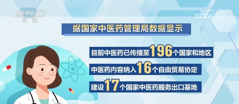 據(jù)國家中醫(yī)藥管理局數(shù)據(jù)顯示,目前中醫(yī)藥已傳播至196個國家和地區(qū),中醫(yī)藥內(nèi)容納入16個自由貿(mào)易協(xié)定,建設(shè)17個國家中醫(yī)藥服務出口基地。與國際標準化組織合作制定頒布64項中醫(yī)藥國際標準,復方青蒿素快速清除瘧疾項目幫助非洲逾百萬人口地區(qū)短期內(nèi)實現(xiàn)了從高度瘧疾流行區(qū)向低度瘧疾流行區(qū)的轉(zhuǎn)變。
