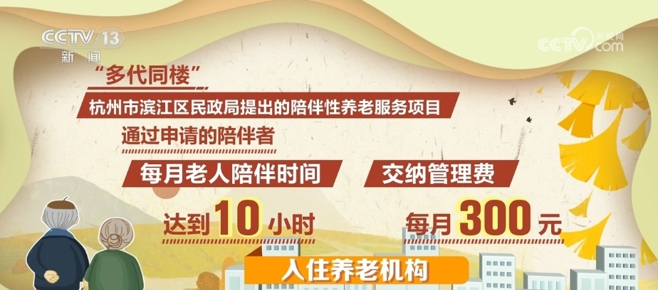 “多代同樓”是由浙江省杭州市濱江區(qū)民政局提出的陪伴性養(yǎng)老服務(wù)項目。通過申請的陪伴者每月只需達到10小時的老人陪伴時間,并交納每月300元的管理費,就可以入住這家養(yǎng)老機構(gòu)。
