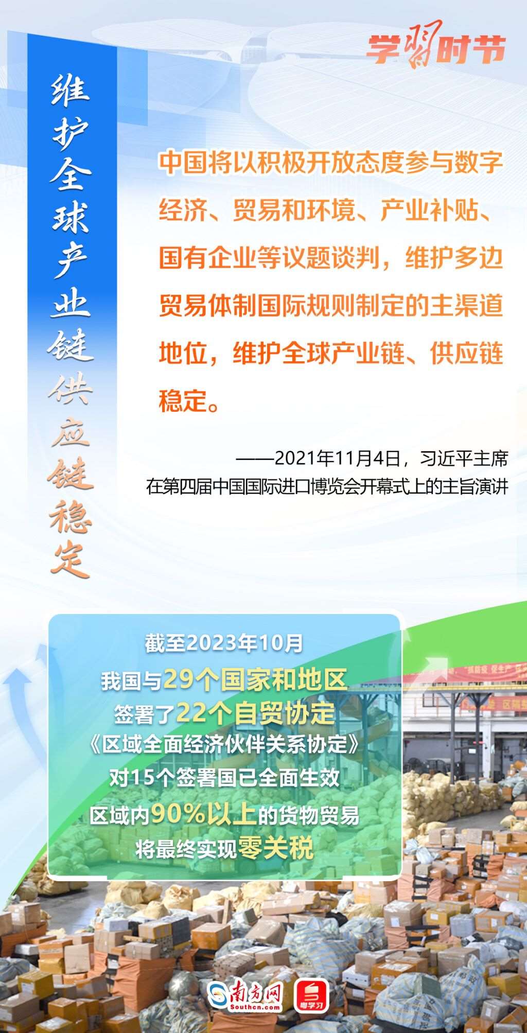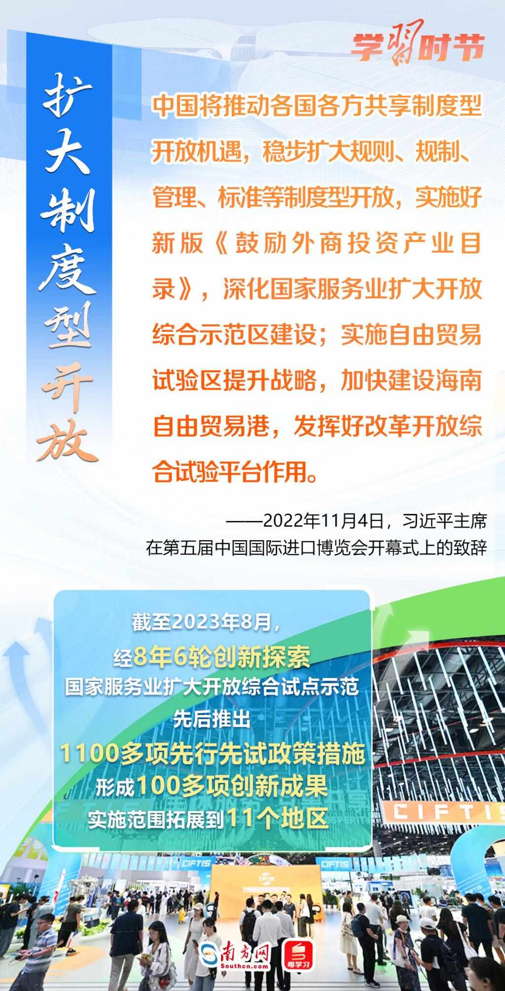 11月5日至10日,第六屆中國國際進(jìn)口博覽會(huì)將在上海舉行。這個(gè)由習(xí)近平主席親自謀劃、親自部署、親自推動(dòng)的世界上首個(gè)以進(jìn)口為主題的國家級(jí)展會(huì),目前已成為舉世矚目的貿(mào)易盛會(huì)、開放合作的重要平臺(tái)、全球共享的國際公共產(chǎn)品。第六屆進(jìn)博會(huì)舉行在即,讓我們通過一組海報(bào),重溫習(xí)近平主席在過去五屆進(jìn)博會(huì)上的重要講話,深刻認(rèn)識(shí)高水平對(duì)外開放的時(shí)代意義與關(guān)鍵作用。