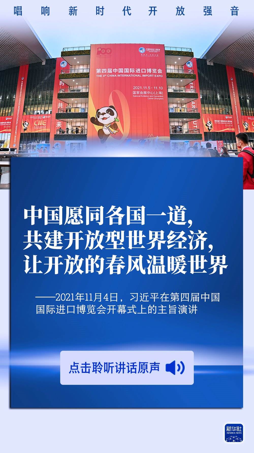 開放是當(dāng)代中國的鮮明標(biāo)識(shí)。習(xí)近平主席說,舉辦中國國際進(jìn)口博覽會(huì),是中國著眼于推動(dòng)新一輪高水平對(duì)外開放作出的重大決策,是中國主動(dòng)向世界開放市場的重大舉措。習(xí)主席在歷屆進(jìn)博會(huì)上的重要講話,發(fā)出開放合作的時(shí)代強(qiáng)音,為建設(shè)開放型世界經(jīng)濟(jì)注入正能量。