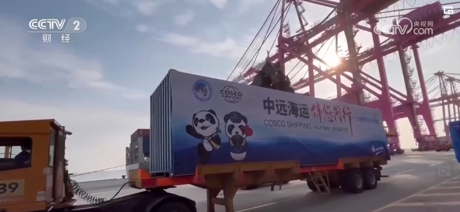 央視財經(jīng)記者 金荷淼:進博會的吉祥物“進寶”戴著的這條圍巾是黃藍相間的,黃色代表“絲綢之路經(jīng)濟帶”,藍色代表“21世紀(jì)海上絲綢之路”,這恰恰體現(xiàn)著進博會與 “一帶一路”的密切聯(lián)系。今年“進博號”中歐班列共發(fā)行3列,承運貨值超過3.5億元人民幣,較上屆進博會增長近三倍。浦東機場貨運站保障參會展品物資重量超20噸,較上屆進博會增長超五成。正是這一場場跨越萬里的接力賽,搖響了新時代國際貿(mào)易的“駝鈴”。
