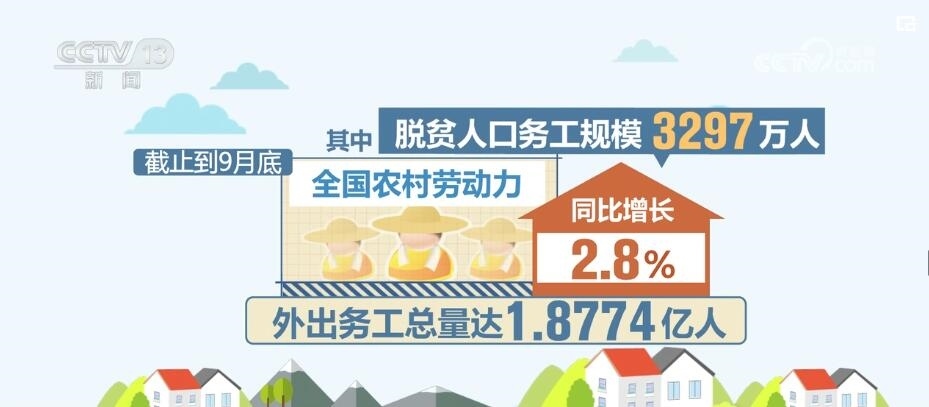 數(shù)據(jù)顯示,到目前,全國簽訂省、市、縣勞務(wù)協(xié)作協(xié)議已超1000份。截止到今年9月底,全國農(nóng)村勞動力外出務(wù)工總量達1.8774億人,同比增長2.8%,其中,脫貧人口務(wù)工規(guī)模3297萬人。隨著勞務(wù)協(xié)作機制的完善、領(lǐng)域的拓寬,將為越來越多的農(nóng)民工提供就業(yè)保障。
