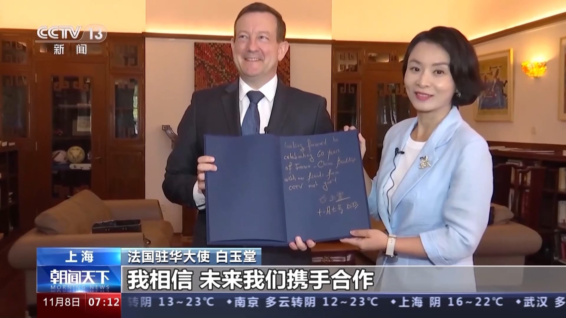 法國駐華大使 白玉堂:今年馬克龍總統(tǒng)訪華,我認為兩國領(lǐng)導(dǎo)人傳達的關(guān)鍵信息之一,就是我們兩國比以往任何時候都更需要加深合作和相互理解。事實上,自從這次馬克龍總統(tǒng)訪華以來,我們已經(jīng)做了很多的工作,以各種可能的方式提高法國在中國的曝光度,比如說經(jīng)濟和貿(mào)易領(lǐng)域,因此也有了法國企業(yè)在今年進博會的大規(guī)模亮相,我們希望中國人民和法國人民建立強有力的聯(lián)系。我認為現(xiàn)在我們兩國人民需要更多的交流,我們渴望并十分愿意越來越多的中國朋友到訪法國。當(dāng)然也期待越來越多的法國人,不管是商人、游客,還是學(xué)生都來到中國。我們將竭盡所能支持和促進所有的這些交流活動。我相信,未來我們攜手合作,能夠取得比過去更為豐碩的成果。(總臺央視記者 李晶晶 王晨 趙迎晨 黃一宸)