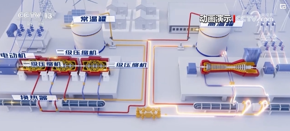 在江蘇常州的金壇鹽穴壓縮空氣國家試驗(yàn)示范電站,這個電站可以把電能儲存在廢棄的地下鹽穴里。它在夜間用電負(fù)荷低的時候,用電帶動空氣壓縮機(jī)充電,過程好比給鹽穴這個“氣球”打氣,將1個標(biāo)準(zhǔn)大氣壓的空氣壓縮為140個標(biāo)準(zhǔn)大氣壓的高壓空氣。白天需要時,一鍵啟動釋放壓縮空氣,產(chǎn)生巨大的動能帶動發(fā)電機(jī)發(fā)電。