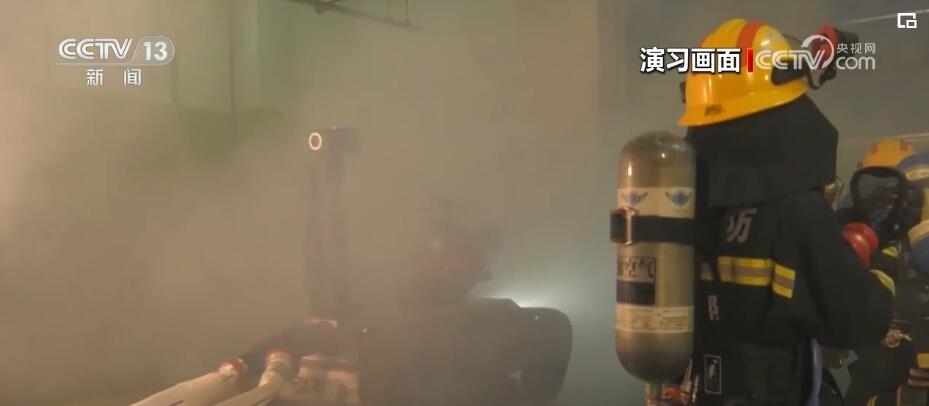 演習(xí)過(guò)程中,舉高噴射消防車從外部進(jìn)行滅火作業(yè)的同時(shí),多支消防救援小隊(duì)進(jìn)入商場(chǎng)內(nèi)部,在濃煙中實(shí)戰(zhàn)模擬火場(chǎng)搜救和滅火作戰(zhàn)。在救援人員的遙控指揮下,消防救援機(jī)器狗首先突入火場(chǎng),利用身上加裝的煙氣成分分析儀、攝像頭等多種設(shè)備,實(shí)時(shí)監(jiān)測(cè)環(huán)境危險(xiǎn)狀況,并對(duì)火場(chǎng)環(huán)境進(jìn)行偵察。在大火猛烈燃燒、建筑物結(jié)構(gòu)不穩(wěn)定情況下,消防救援人員遠(yuǎn)程控制無(wú)人滅火機(jī)器人首先進(jìn)入火場(chǎng),進(jìn)行前期滅火作業(yè)。為保障內(nèi)攻救援人員安全,消防員綜合定位系統(tǒng)也投入使用。每名消防員都攜帶平板終端和定位信標(biāo),指揮員可以實(shí)時(shí)掌握進(jìn)入火場(chǎng)人員的生命體征、實(shí)時(shí)位置。一旦救援人員遇險(xiǎn),系統(tǒng)能夠第一時(shí)間引導(dǎo)緊急救援小組展開(kāi)營(yíng)救行動(dòng)。
