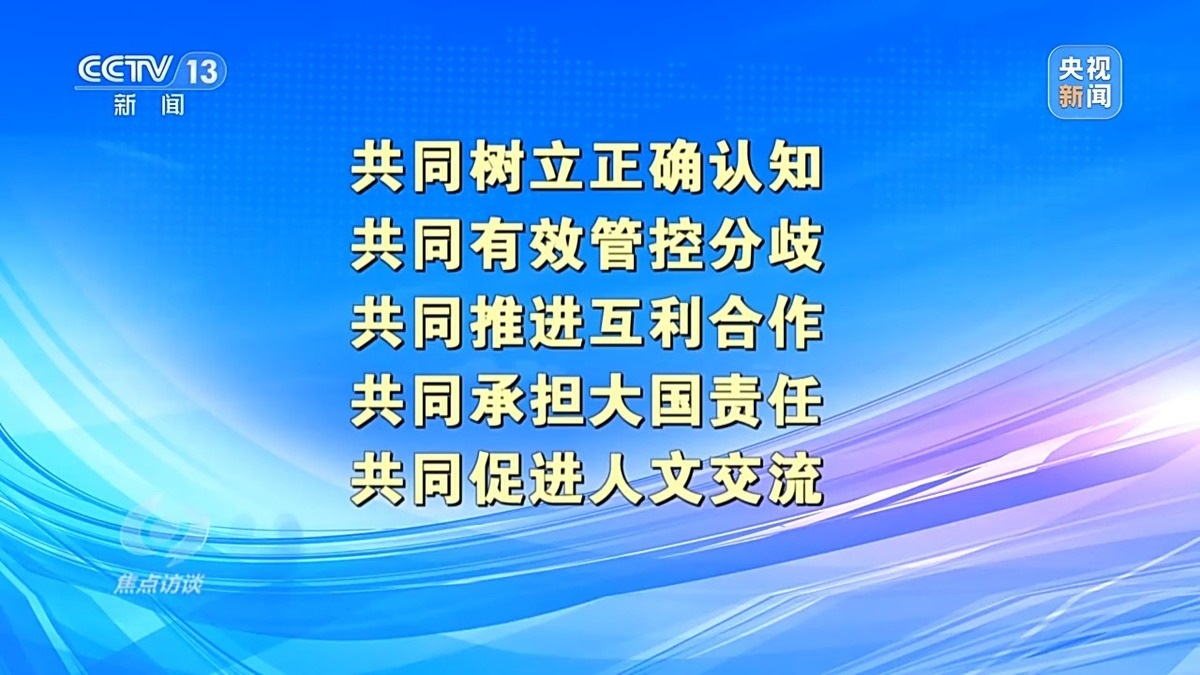 中國人民大學(xué)國際關(guān)系學(xué)院教授 刁大明:現(xiàn)在看舊金山這次會晤本身,中方非常清晰地從負(fù)責(zé)任大國角度出發(fā),從對歷史、對人民、對世界角度出發(fā),提出了一個(gè)中美兩國正確相處之道?!拔鍌€(gè)共同”是中國提出的一個(gè)正確相處之道,也是中國從負(fù)責(zé)任角度出發(fā),為穩(wěn)定中美關(guān)系,為更多增進(jìn)全球福祉提出中國方案。