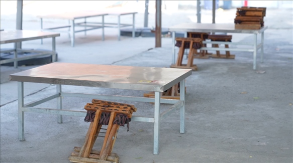 在一個(gè)汽車(chē)修理廠(chǎng)大院里,有一家露天燒烤店,夏天營(yíng)業(yè),冬天停業(yè)。