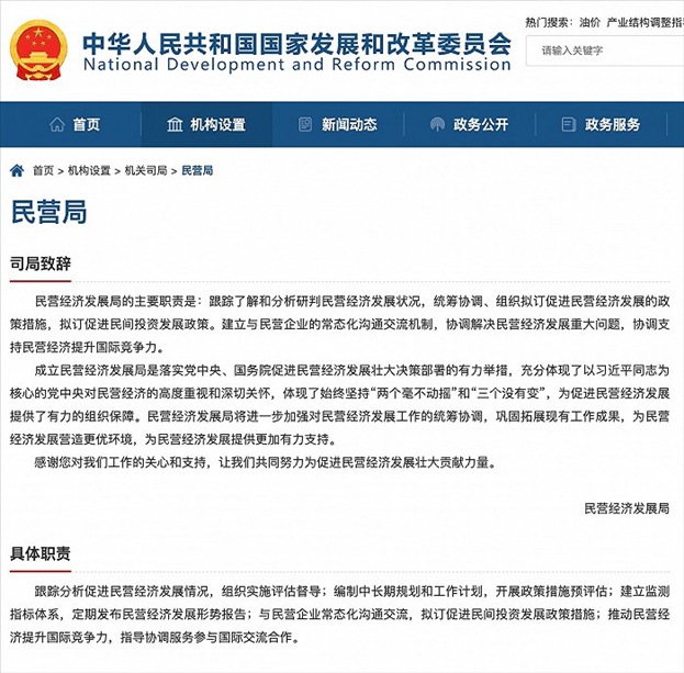 ·國家發(fā)改委民營經(jīng)濟發(fā)展局網(wǎng)頁上線。