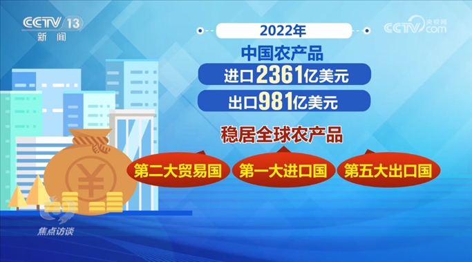 數(shù)據(jù)顯示,2001年至2022年,中國農(nóng)產(chǎn)品貿(mào)易額年均增長12.6%,農(nóng)產(chǎn)品出口額年均增長9.1%,進(jìn)口額年均增長15.4%。2022年,中國農(nóng)產(chǎn)品進(jìn)口2361億美元,出口981億美元,穩(wěn)居全球農(nóng)產(chǎn)品第二大貿(mào)易國、第一大進(jìn)口國、第五大出口國。糧食安全的穩(wěn)定性,離不開農(nóng)業(yè)供應(yīng)鏈的安全可控。