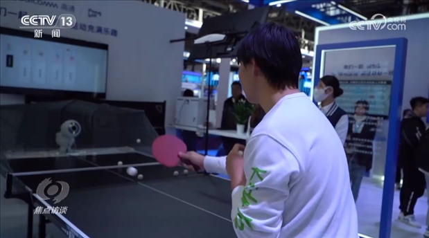 數(shù)字科技鏈的展館有一臺全球首款擬人型發(fā)球機(jī)器人,能實(shí)時(shí)捕捉高速乒乓球的軌跡,生成專業(yè)報(bào)告,數(shù)字科技讓運(yùn)動變得更加有趣。