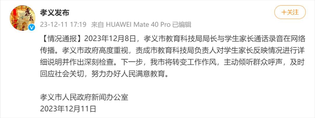 ·山西一家長反映問題時遭教科局長爆粗口,官方通報:作出深刻檢查。