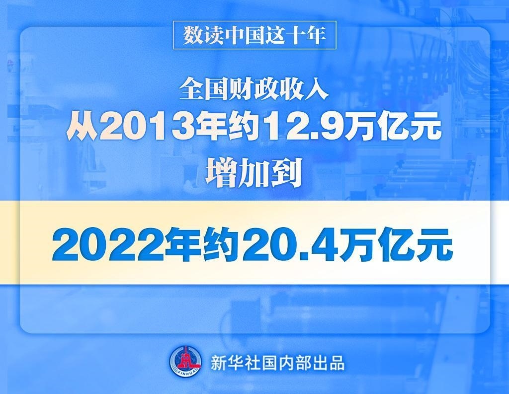 黨的十八大以來,財政收入保持較快增長,全國財政收入從2013年的約12.9萬億元增加到2022年的約20.4萬億元。