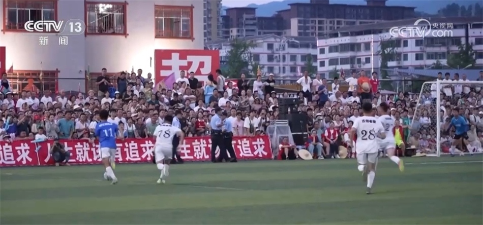 截至目前,全縣對公眾免費(fèi)開放的標(biāo)準(zhǔn)足球場已經(jīng)達(dá)到14個(gè),全縣38.5萬人口中有5萬人會(huì)踢足球、喜歡踢足球,有超過40支鄉(xiāng)村足球隊(duì)活躍在村超賽場上,榕江縣的人均足球場面積是全國數(shù)據(jù)的4倍多。