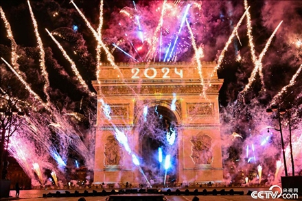 當(dāng)?shù)貢r(shí)間2024年1月1日,法國(guó)巴黎舉行新年慶?;顒?dòng),凱旋門(mén)前燃放煙花。