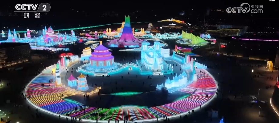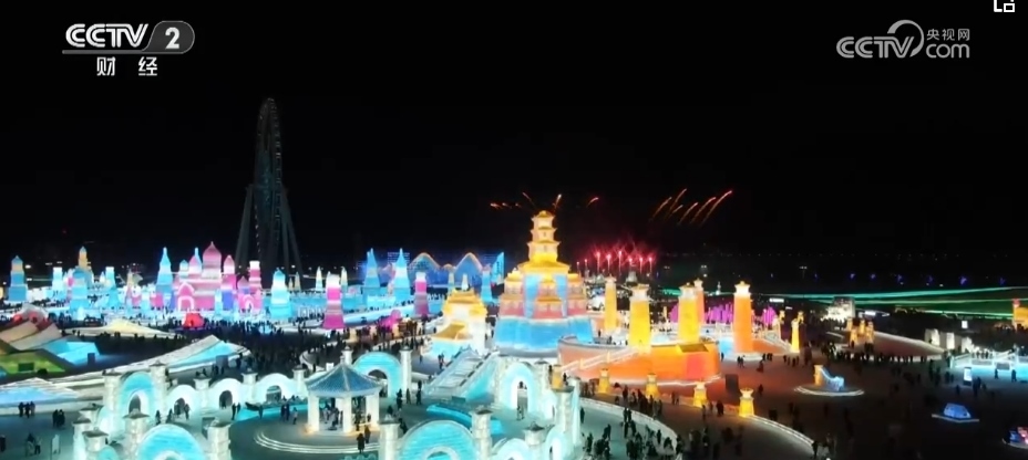 總臺央視記者 郭晉華:在這個冰雕玉砌的世界,一簇簇焰火映襯著流光溢彩的冰雕建筑群,帶著人們對新年的祈盼噴薄而出。哈爾濱冰雪大世界,雖然現(xiàn)在室外氣溫達(dá)到了零下20多度,但是大家冰雪跨年的熱情卻是點燃了全場,來自全國各地的游客在這場狂歡中一起迎接新年的到來。