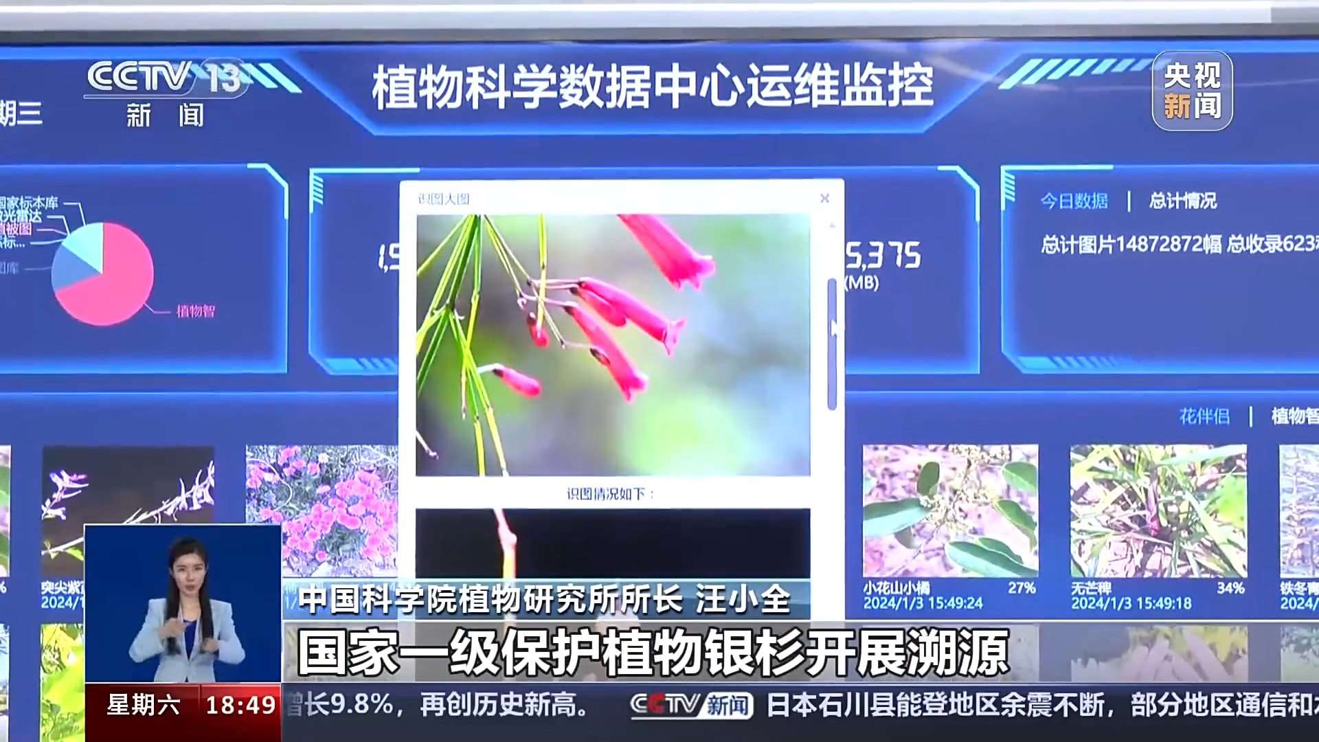 工作人員告訴記者,在植物大數(shù)據(jù)平臺上,全國1000多種重點保護(hù)野生植物的情況,都可以在數(shù)據(jù)平臺的大屏幕上,得到直觀的體現(xiàn)。