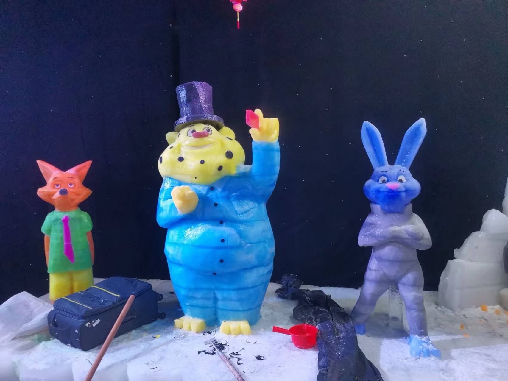 當被問到最得意的作品是什么,臧洪州搓了半天手也沒說出來。他說,冰雕雪雕,總有消亡的那一刻,“因為短暫,所以珍惜”,雖然一年當中忙碌的冰雪季只有一兩個月,但在他的朋友圈里留下的基本是作品照片,要在日后的生活中回味。