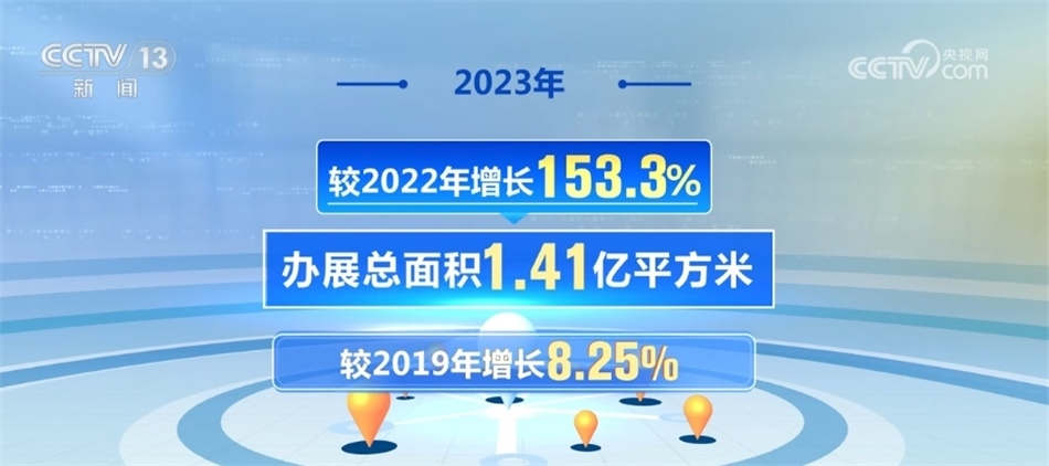 《中國(guó)展覽經(jīng)濟(jì)發(fā)展報(bào)告2023》數(shù)據(jù)顯示,國(guó)內(nèi)2023年實(shí)際運(yùn)營(yíng)的展覽館數(shù)量為194個(gè),比2022年增加58個(gè),比2019年增加21個(gè),數(shù)量創(chuàng)歷年新高。大型展覽館利用效率同比大幅提升,2023年共有40個(gè)展覽館舉辦30個(gè)及以上展會(huì),比2022年大幅增加22個(gè),增幅達(dá)122.22%;35個(gè)展覽館舉辦展會(huì)總面積在100萬平方米以上,比2022年增加15個(gè),增幅達(dá)68.18%。2023年各地加快展覽館建設(shè)步伐,新建展覽館迎來交付高潮,據(jù)不完全統(tǒng)計(jì),2023年新增展覽館可展覽面積超過100萬平方米。