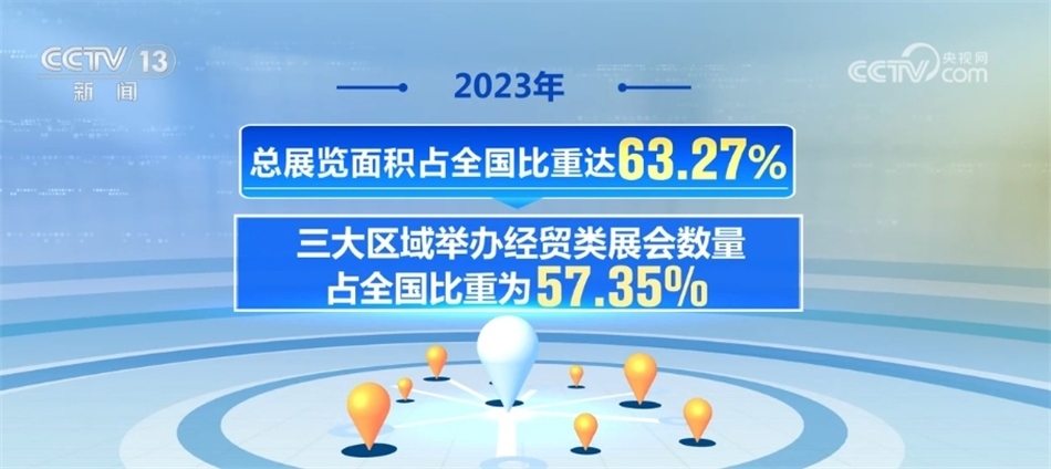 中國(guó)貿(mào)促會(huì)展覽管理部部長(zhǎng) 鄔勝榮:從區(qū)域分布來看,展會(huì)分布呈現(xiàn)明顯的區(qū)域性特征,東部地區(qū)舉辦經(jīng)貿(mào)類展覽項(xiàng)目、數(shù)量和面積均領(lǐng)跑全國(guó),全國(guó)占比分別為68.26%和73.53%。