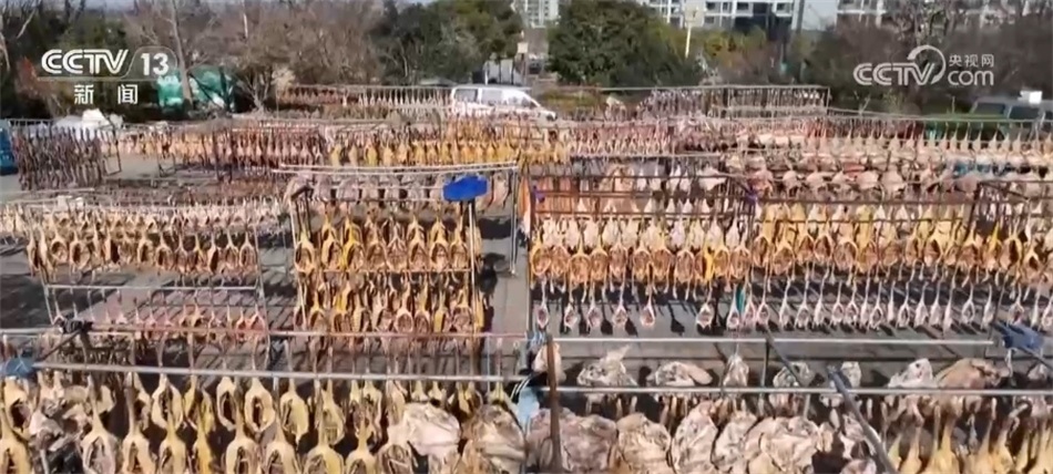 每到春節(jié)臨近,江蘇洪澤當(dāng)?shù)囟加须缰葡挑~、咸雞鴨的習(xí)俗,腌制過的臘味口味獨特、便于保存,是家家戶戶年夜飯中不可缺少的美食。進入臘月,那里的臘貨也即將迎來銷售高峰。