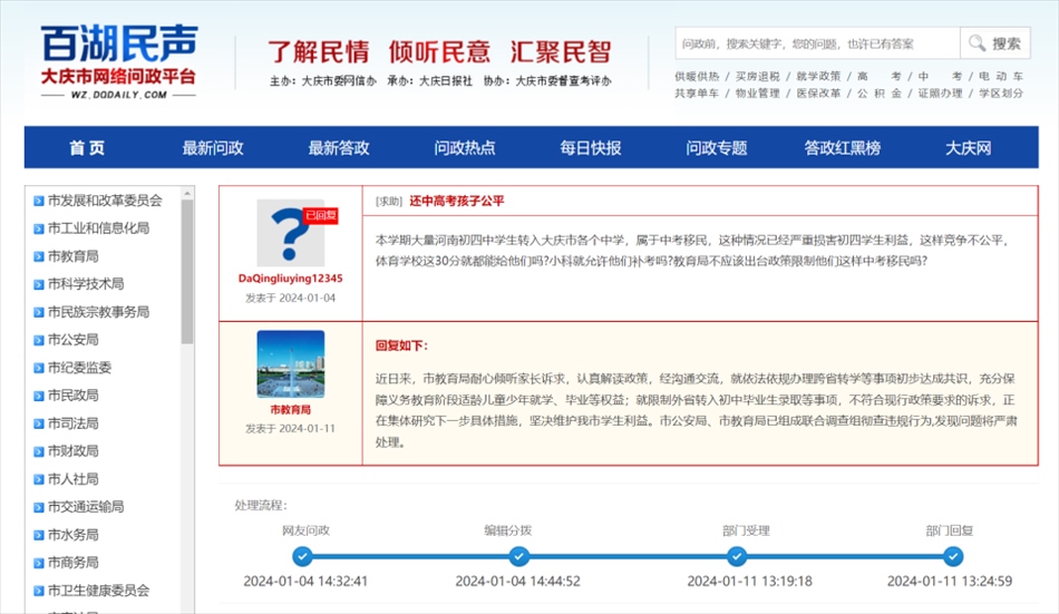 ·家長稱大量河南中學生“中考移民”至黑龍江大慶各個中學,官方回應:暫時關閉學籍系統(tǒng),成立聯(lián)合調(diào)查組徹查違規(guī)行為。
