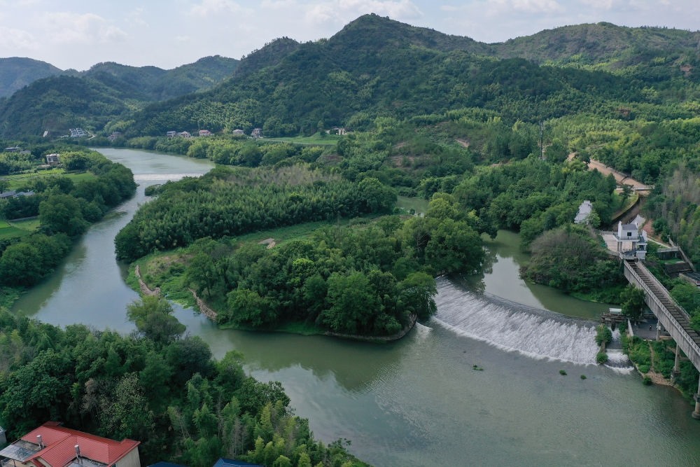 位于浙江省衢州市龍游縣的世界灌溉工程遺產(chǎn)姜席堰(2023年8月2日攝,無人機照片)。新華社記者 黃宗治 攝