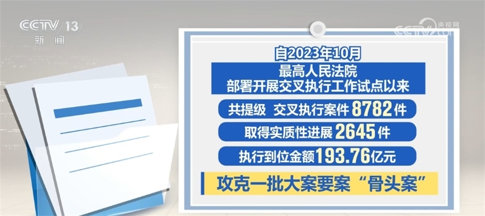 最高人民法院介紹,執(zhí)行難中常見(jiàn)被執(zhí)行人是當(dāng)?shù)刂匾髽I(yè)、納稅大戶,甚至是重點(diǎn)國(guó)企或行政部門(mén)等情況。交叉執(zhí)行就是要讓接受指定的法院在不受牽絆、沒(méi)有包袱、完全依法自主的條件下力推案件執(zhí)行。據(jù)統(tǒng)計(jì),開(kāi)展交叉執(zhí)行工作試點(diǎn)以來(lái),共提級(jí)、交叉執(zhí)行案件8782件,取得實(shí)質(zhì)性進(jìn)展2645件,執(zhí)行到位金額193.76億元,攻克了一批大案要案“骨頭案”。最高人民法院要求,上級(jí)法院發(fā)現(xiàn)原執(zhí)行法院存在消極執(zhí)行、拖延執(zhí)行等執(zhí)行不力情形,發(fā)現(xiàn)違紀(jì)違法問(wèn)題線索的,應(yīng)當(dāng)嚴(yán)肅依紀(jì)依法查處、追究責(zé)任。