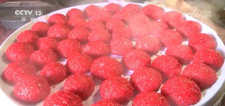 “紅粑粑”是貴州銅仁市江口縣的傳統(tǒng)美食。每年春節(jié)前,當(dāng)?shù)厝罕娋蜁?huì)制作“紅粑粑”過大年。圓圓的“紅粑粑”寓意著新年富足,更代表著全家團(tuán)團(tuán)圓圓、幸福美滿。