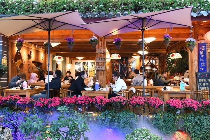 2024年1月7日,游人在云南麗江古城享受美食。新華社發(fā)(趙慶祖 攝)