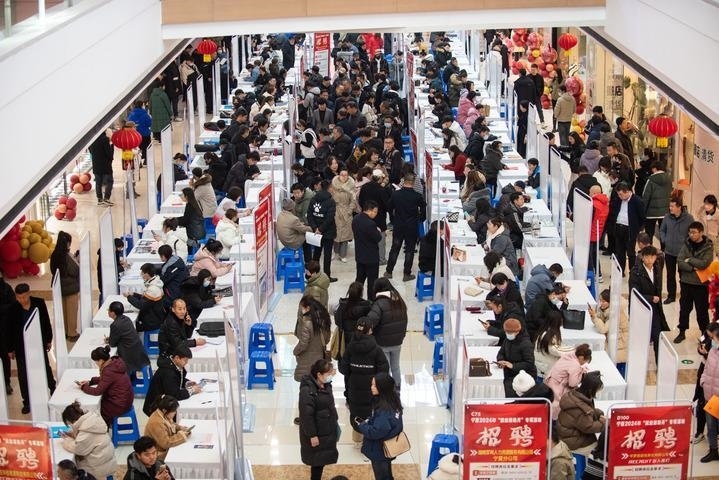 這是2024年1月5日在寧夏石嘴山市萬達(dá)廣場拍攝的寧夏回族自治區(qū)就業(yè)援助月專項(xiàng)服務(wù)活動現(xiàn)場。新華社記者 李旭倫 攝