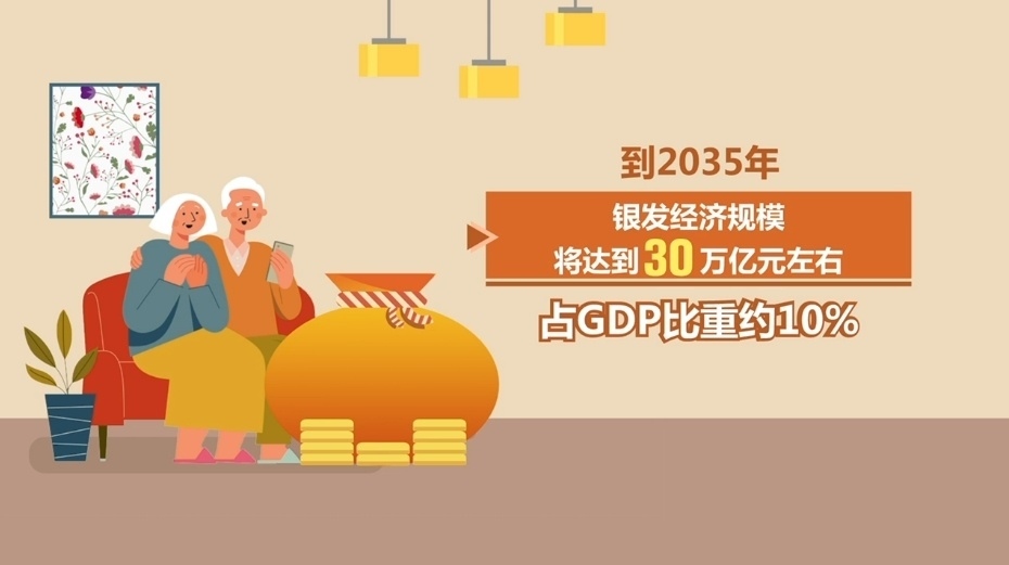 目前,我國銀發(fā)經濟規(guī)模大概在7萬億元左右,占GDP比重大約為6%左右。到2035年,銀發(fā)經濟規(guī)模將達到30萬億元左右,占GDP比重約10%。